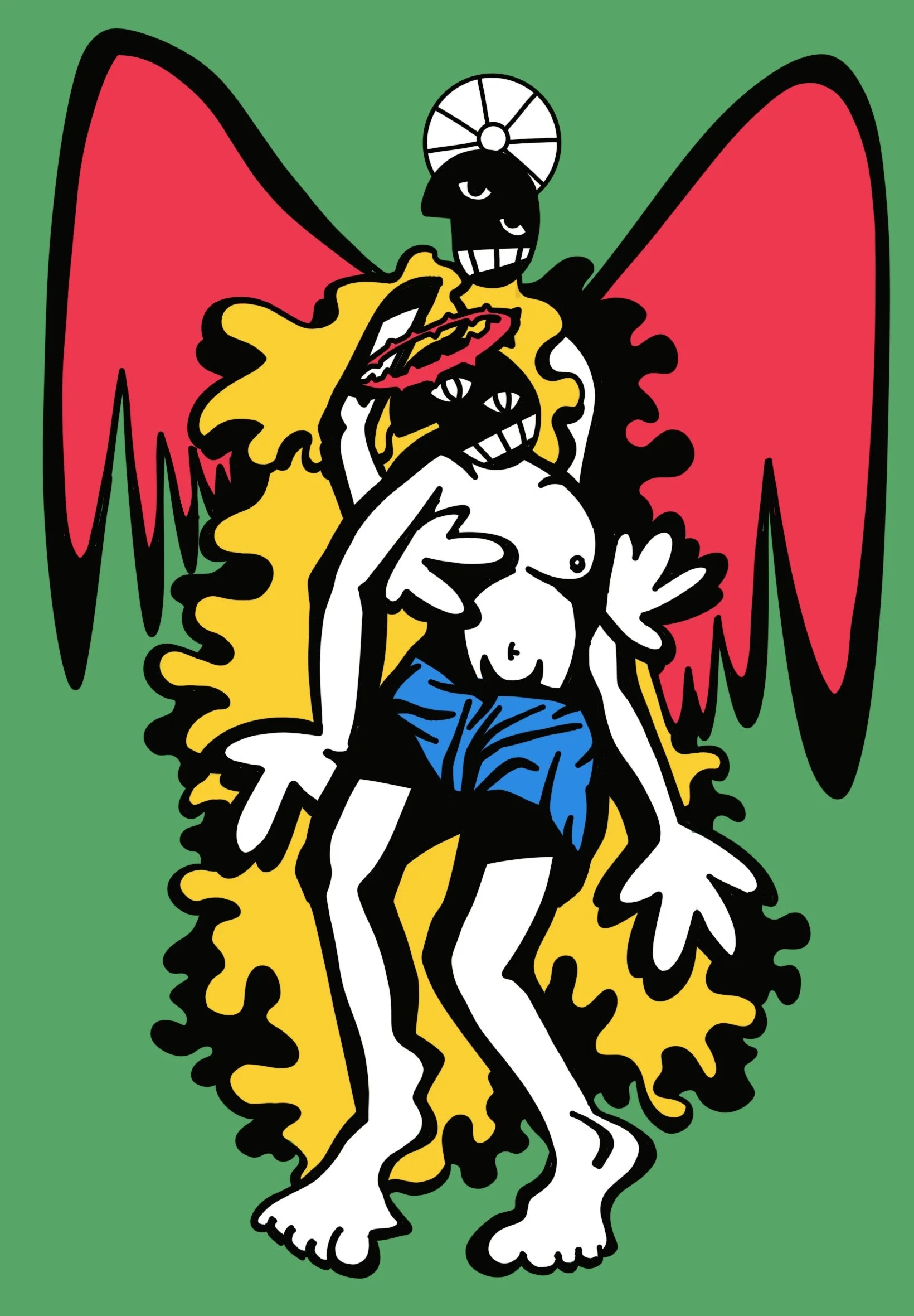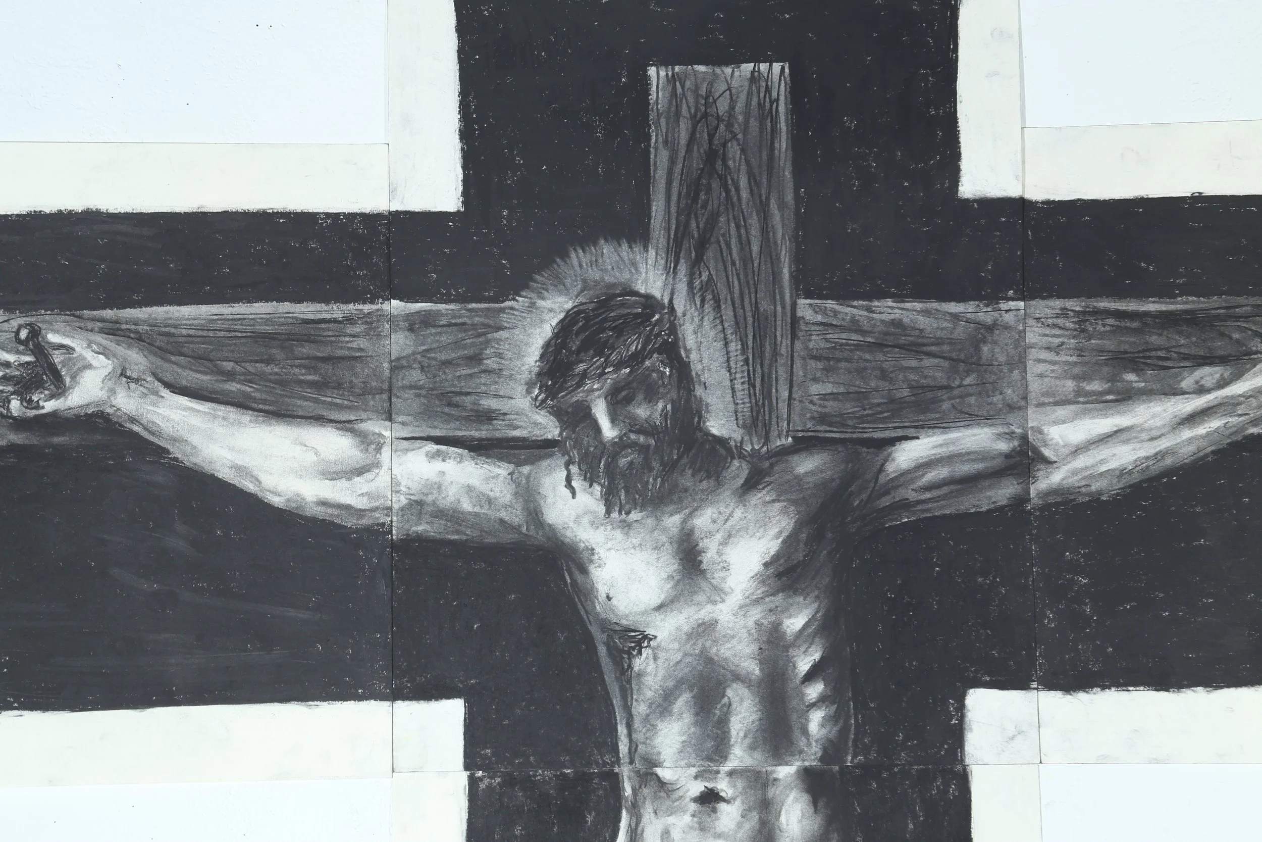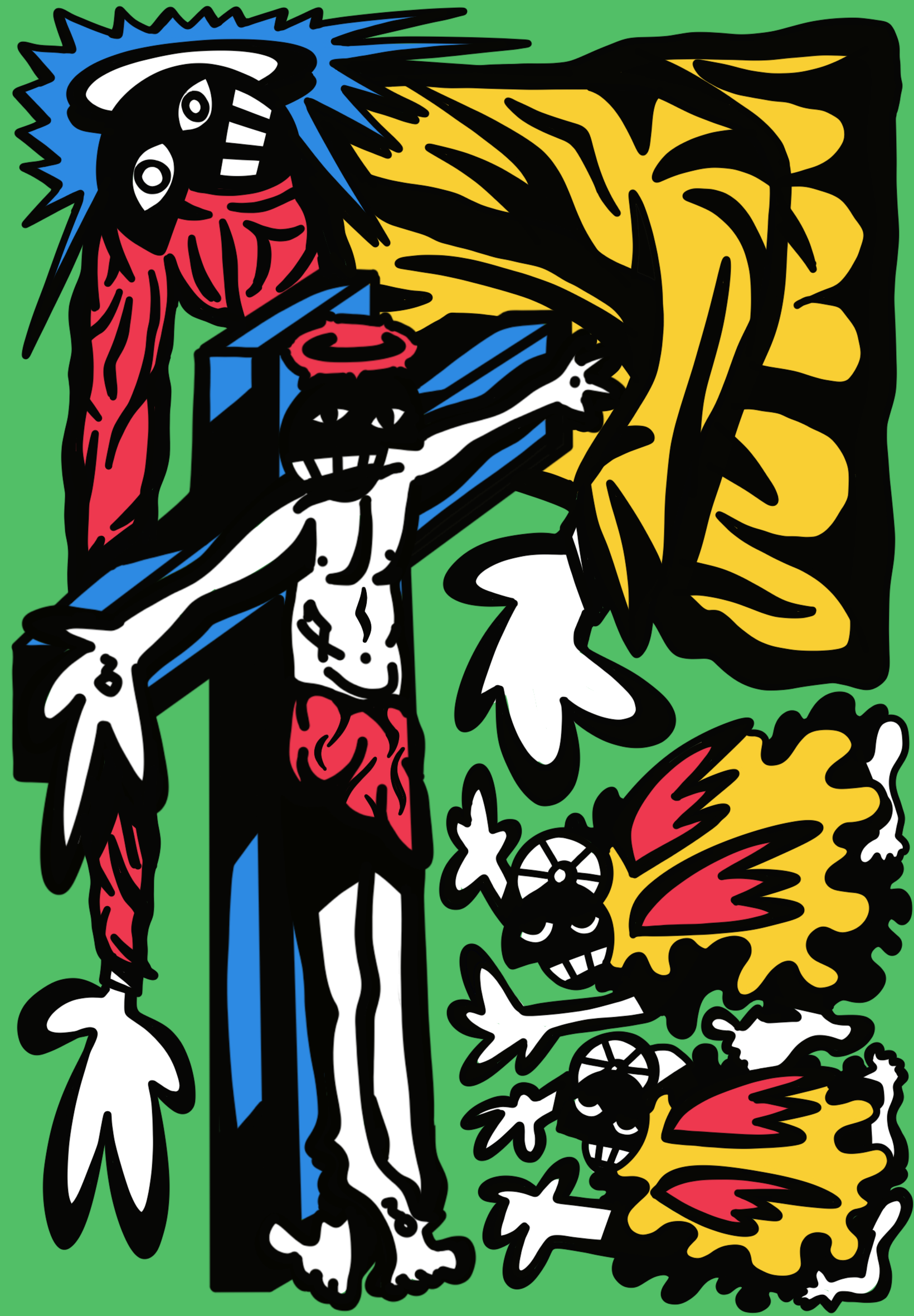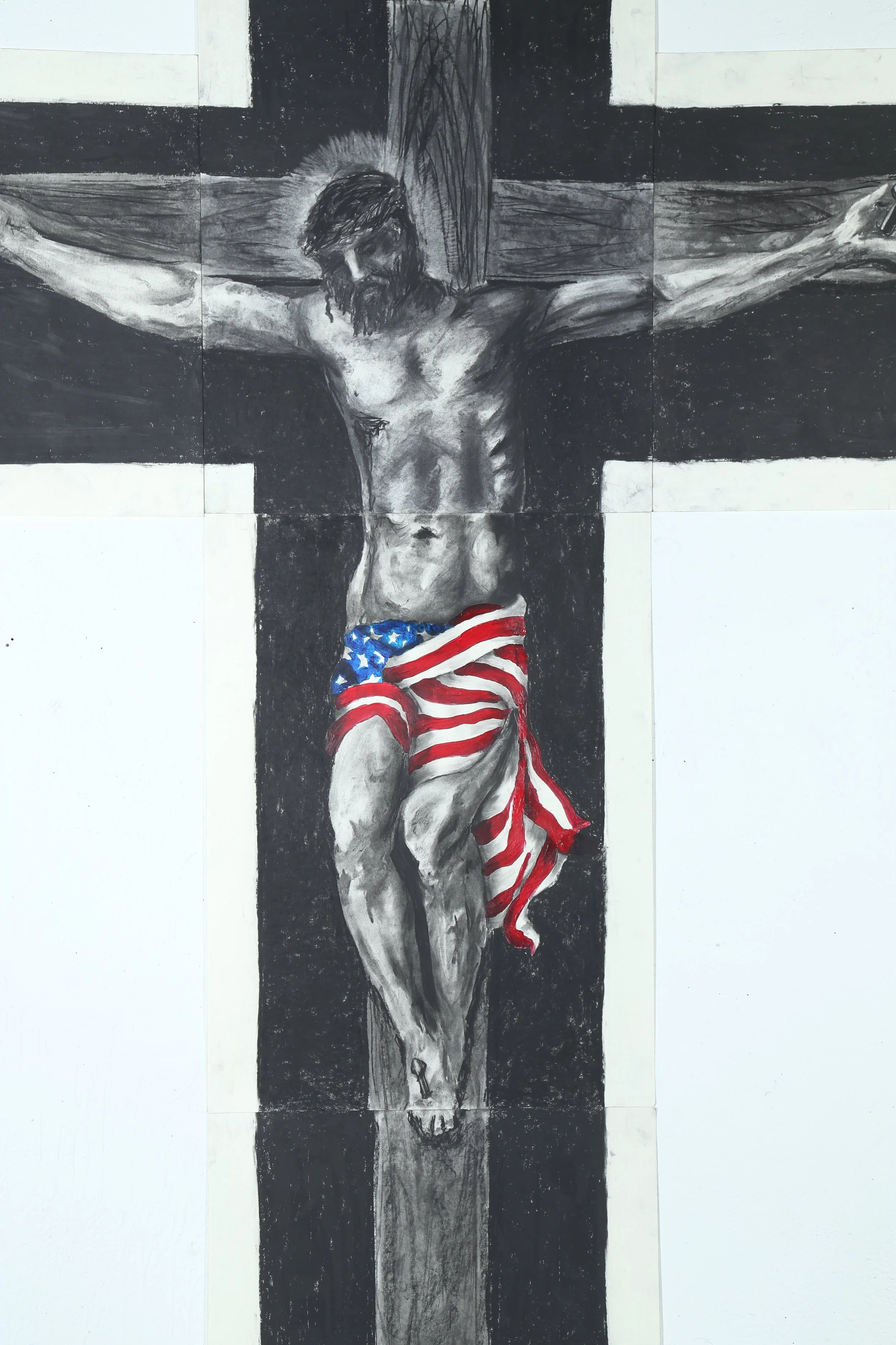 This piece reimagines the body of Jesus Christ in a repeated, Pop Art style to critique the Catholic Church's greed, capitalism, and consumerism. By rendering Christ as a commodified, mass-produced icon, I highlight how this iconography has transformed from a symbol of humility and sacrifice into an entity that profits from faith. The vibrant, commercial colors reflect the commercialization of spirituality, questioning the tension between sacredness and spectacle in today's market-driven world.